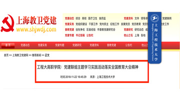 昨日,上海教卫党建网在“推荐新闻”栏目推出《工程大高职学院:党建联组主题学习实践活动落实全国教育大会精神》一文,对必赢高职学院党委携手上海出版印刷高等专科学校基础教学部思政教研部联合党总支举行学习贯彻落实全国教育大会精神党建联组主题学习实践活动的情况进行了报道。详细内容如下: