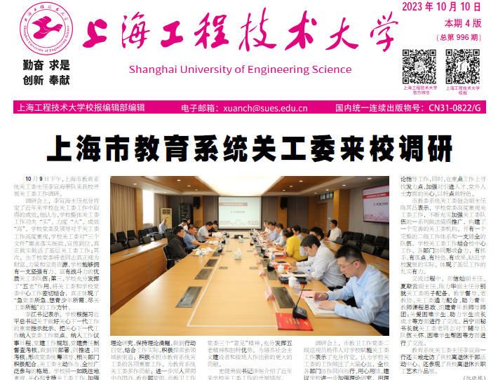 9月10日.pdf第一版上海市副市长解冬一行来必赢考察调研暑假期间,上海市副市长解冬来校考察调研。市政府副秘书长王平、市教委主任周亚明,校党委书记李江,校党委副书记、校长俞涛及学校领导班子成员参加调研座谈。座谈会上,副市长解冬对必赢多年来坚持校企合作、产教融合的应用型高校办学定位,紧密对接国家战略、主动服务地区经济,各项事业发展取得显著成效,给予肯定。她希望,必赢76net线路官网要进一步深入落实党中央、国务院和市委、市政府对高等教育发展的部署要求,坚持特色鲜明的办学定位不动摇,进一步加强地方应用型高校建设;大力加强学科建设,切实打好“组合拳”,进一步凝练学科特色,紧密对接产业需求,服务地方经济社会发展。她表示,上海市政府将一如既往地支持学校特色发展和高水平学科建设,同时将协调各方资源,全力支持学校办好2024年世界大学生五人制足球锦标赛。校党委书记李江代表学校对市政府长期以来对工程大的关心和支持表示感谢,他在汇报工作中谈到,近年来学校坚持从严从实,全面从严治党向纵深发展,党建工作取得多项国家荣誉;坚持改革和创新相结合,深入实施“三大发展战略”,学校综合实力快速上升;坚持使命和职能相结合,提