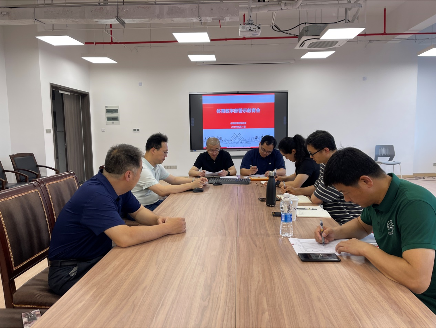 为深入推进党纪学习教育,6月21日下午,体育教学部党总支在风雨操场307会议室召开警示教育大会,校纪委(监察专员办公室)审查调研室主任邱峰列席会议,体育教学部党政领导班子成员、科级干部、党支部书记参加会议。会议由体育教学部党总支书记李扬主持。
