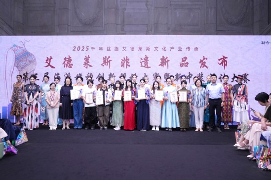 第三届海派旗袍创新设计大赛暨艾德莱斯新中装设计大赛以“全球邀约・场景新生”为核心,延续“生活旗袍、职业旗袍、礼服旗袍”三大创作维度。青年设计师以创意使非遗服饰从“仪式标签”,成为日常穿搭的文化表达。艾德莱斯非遗新品发布环节以“丝路活化石的当代重生” 为主题,纺研院及丝绸集团发言人在发布中表示:“艾德莱斯非遗的产业化发展,是沪喀文化交流的重要成果。我们通过工艺改良与设计创新,让这一‘21 世纪最后的手工业’真正走进现代生活。”