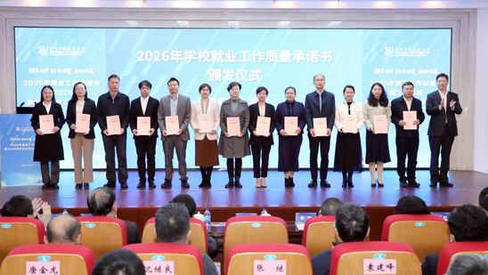 “稳就业”“保就业”事关学校人才培养质量跃升与社会评价认可的“提质”核心,事关学生职业发展前途与人生价值实现的“共赢”目标,更需以“拓新求变”的主动姿态应对就业市场新态势、破解工作推进新挑战。为明确工作任务、压实工作责任、切实做好2026届毕业生就业工作,李江向各学院负责人颁发了2026年就业工作质量承诺书。