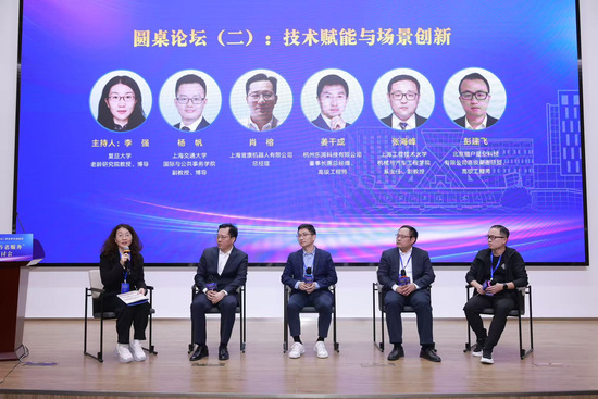 圆桌论坛(二)以“技术赋能与场景创新”为主题,由复旦大学老龄研究院李强教授主持,聚焦人工智能在养老中的应用实践与场景创新等展开深入交流。