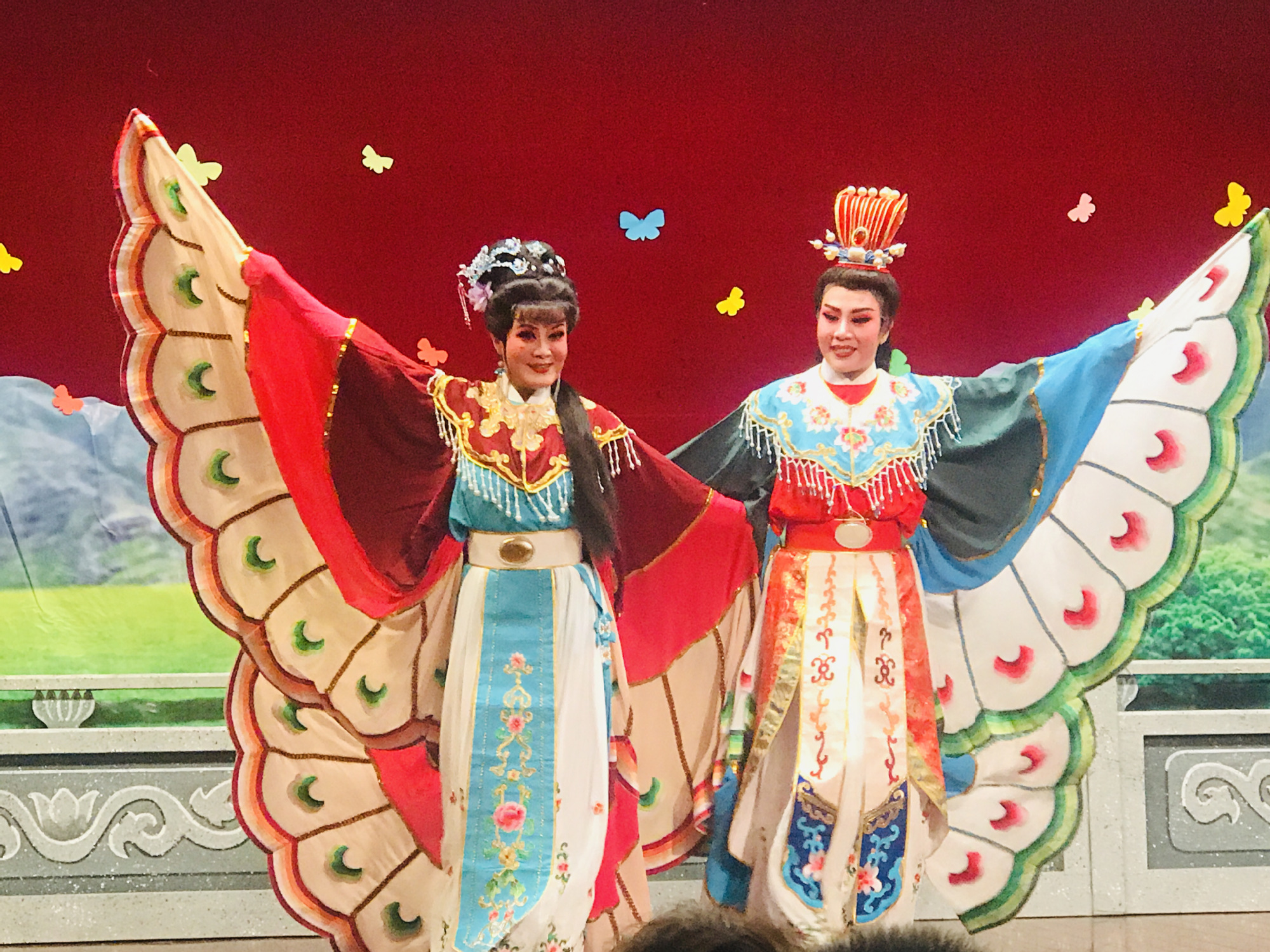 演员们唱腔优美动听,表演真切动人,生动再现了那一段凄美动人的爱情故事。舞台上,水袖轻扬,云步轻点,演员的一颦一笑、一举一动都散发着越剧无穷的魅力,赢得观众的阵阵掌声,有些观众被戏中的情节吸引,流出了眼泪,最后的“化蝶”,优美的旋律响起,演出达到了高潮。最后演出在演员的鞠躬谢幕中圆满结束。