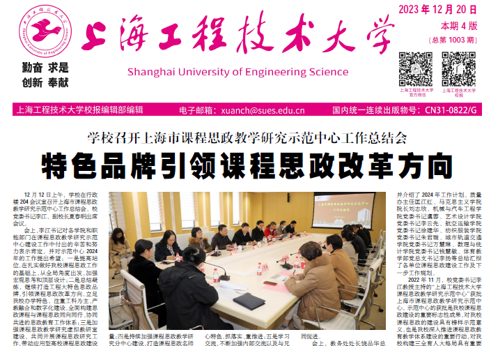 12月12日上午,学校在行政楼204会议室召开上海市课程思政教学研究示范中心工作总结会。校党委书记李江、副校长夏春明出席会议。